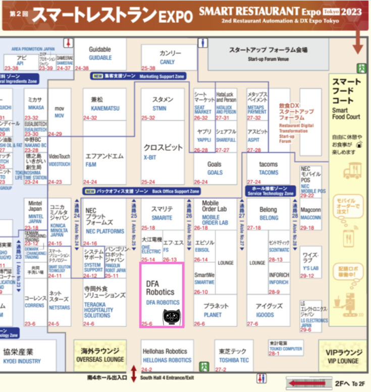 また、飲食DX体験ラウンジ『スマートフードコート』ではDFA Roboticsが提案する、ネコ型配膳ロボット「BellaBot(ベラボット)」が登場する。