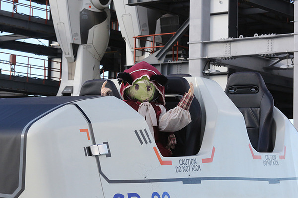 「ねこずきん」ちゃんだ。「ねこずきん」ちゃんは「SR-02」のパイロットとして搭乗。観覧に集まった人たちに手を振ったり、笑顔を振りまき、なごませていた。ちなみに自律機能と遠隔操作機能の両方を備え、この日は自律機能で動作していた。