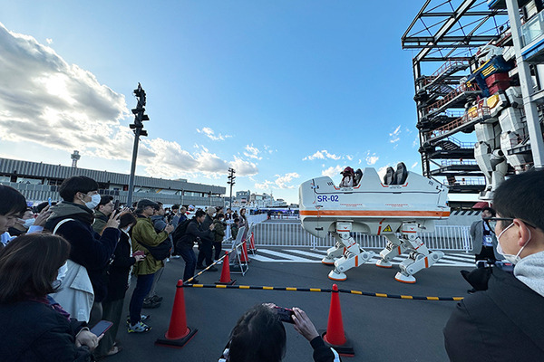 「SR-02」は、歩行(前進/後退/右左折)をはじめ、人が乗降するための屈伸動作、ローリング、ピッチングなどさまざまな動きが可能となっており、アミューズメント施設やレジャー施設、イベント会場での展示およびデモンストレーションなどへの活用を想定している。