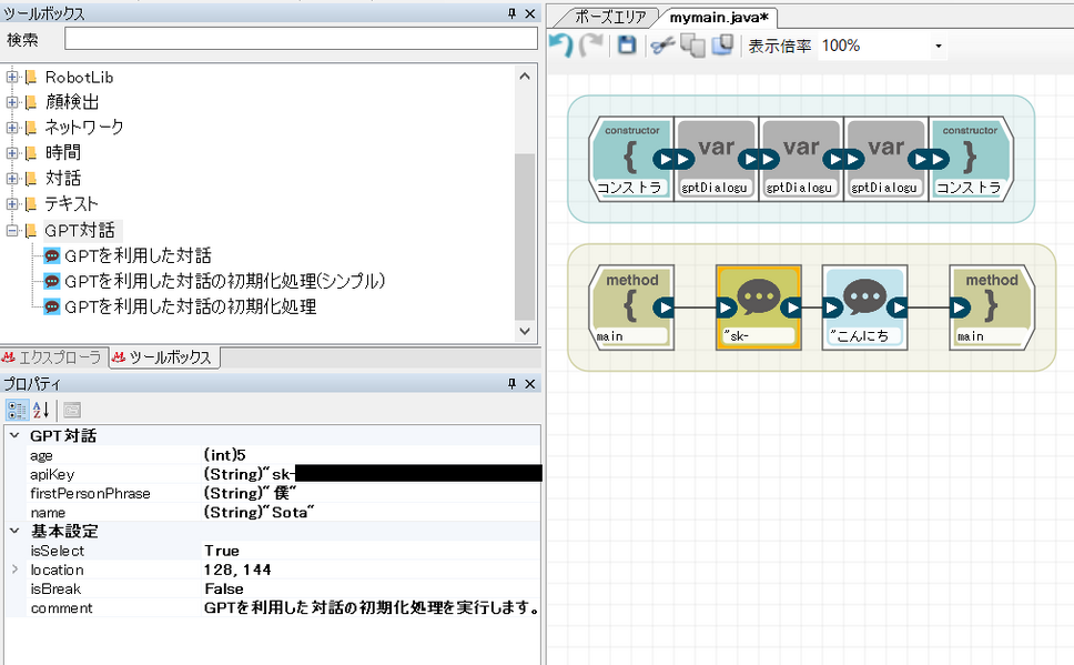 VstoneMagicは、ヴイストン株式会社製の多くのコミュニケーションロボットに対応した開発環境であるため、今回公開したGPT対話ブロックも、VstoneMagicが対応する多くのロボットで利用可能であることが期待できるが、ヴイストンで実機の動作を確認したのは「Sota(ソータ) Intel Edison版」および「着ぐるみロボット『くるみちゃん』」のみとなっている。
