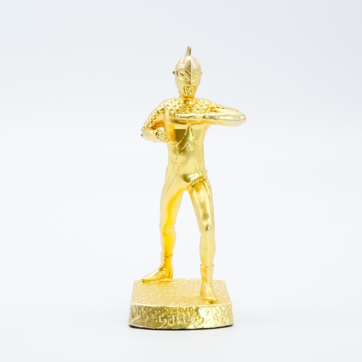 「ウルトラセブン」をモチーフとしたメタル(金属製)のペーパーウェイト。ポージングや、細部の模様など細かい箇所までこだわった。高級感のあるゴールドカラー仕上げだ。