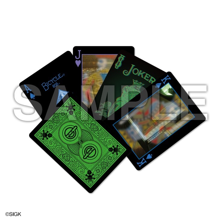 世界一有名なトランプであるBICYCLEは100年以上の歴史があり、プレイングカードとしては最高級の品質をもっており、また、その品質の良さやデザイン性の高さから多くのファンやコレクターが世界中に多くいることでも知られている。今回はタックケース(外箱)と絵札が完全に攻殻機動隊S.A.C.仕様だ。J、Q、Kの絵札が光学迷彩になっていて、ジョーカー、カード背面にもデザインが施されている。
