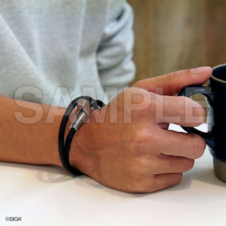 作中に出てくるジャックをモチーフにしたブレスレット。パーツ同士はマグネットで繋がっている。本革を使用しており使い込めば込むほど味がでる商品だ。