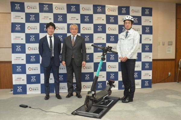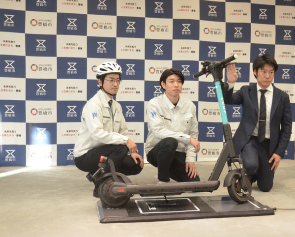 電動キックボードの貸し出しと給電スポットは、「豊橋駅南口駅前広場(駅前大通1丁目)」、「複合施設emCAMPUS(駅前大通2丁目)」、「こども未来館ここにこ(松葉町3丁目)」、「豊橋市役所(今橋町)」の4カ所に設ける。中心市街地に電動キックボードを置くことで、各拠点間の移動をスムーズにし、回遊性を高める狙いがある。