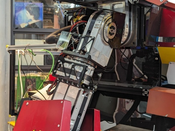 アクチュエーターは「既存の産業用ロボットでは特性が合わない」とのことで、既成のブラシレスDCモーターとオープンソースのモータードライバー「moteus MJBOTS」、これにハーモニックドライブ製の減速機を組み合わせて使っている。正面から見ても側面から見てもかっこいいプロポーションの実現と、扱いやすさの両立を目指した。