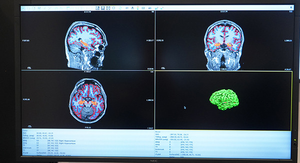 今回開発した技術は、将来の脳の委縮や記憶力に関連するといわれている「海馬」の体積の変化を可視化するもので、可視化された将来の脳の状態を見ることで加齢に伴う脳の変化を見ることができる。