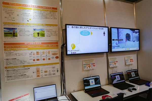 ドコモは、それらNPCをメタバースの管理者がテキスト入力することで作り出すことができ、ある程度の行動や性格などを自動で与える生成AIを開発し、2024年1月17日と18日に東京国際フォーラムで開催した「docomo Open House’24」で「無人ガラガラメタバースに賑わいを ~生成AIにより多様に振る舞うNPCを提供~」ブースでデモを公開した。