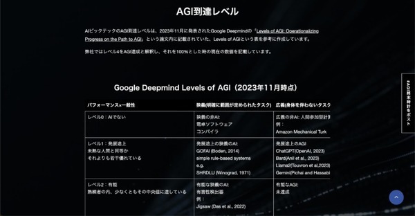 AIビックテックのAGI到達レベルは、革新的な発表がされるたびに更新され、常に最新の情報を反映される。