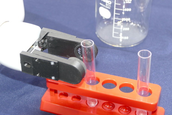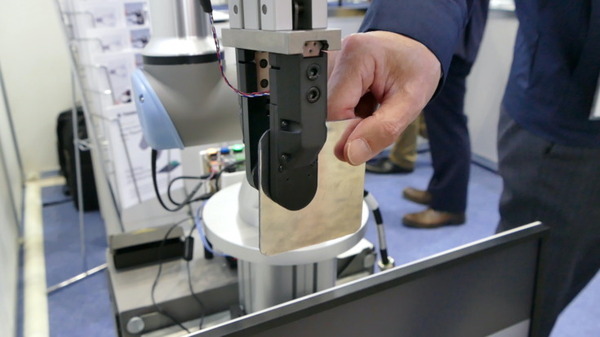 これをロボットの手先につけることで、様々なものを掴み損なうことなく掴めるようになる。ロボデックスでも電球や金属部品など、様々なものを一つの指で扱えることをデモしていた。