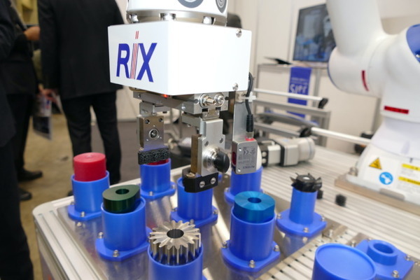 メーカー商社のリックスのブースでは、九州のロボットベンチャーKiQ Roboticsと共同研究開発した「柔軟指」が出展されていた。3Dプリンターで作られた樹脂製の指で、対象に合わせて変形するラティス(格子)構造とすることで柔軟性を持たせたものだ。