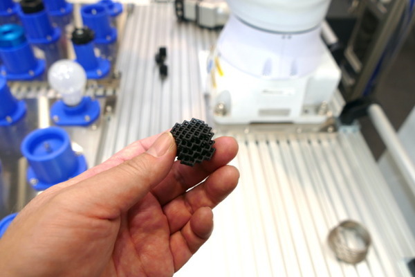 重量によってラティス構造にもいくつか違うタイプがあるが、一つでも色々なものがつかめるため、段取り替えの工数を減らすことができるとのこと。耐久性が気になるところだが、ゲルなどの柔軟素材と違って、素材そのものは強度があるものを使って構造で柔らかさを実現しているため、耐久性もあるという。