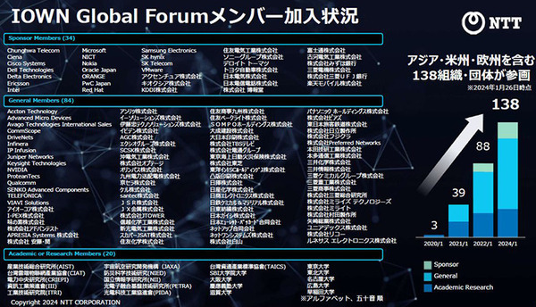 なお、冒頭で前述した「IOWN Global Forumメンバー」は、現状ではの下記の通り138となっている。
