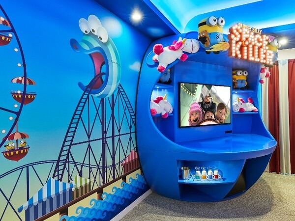 「ミニオンルーム ~グルーの邸宅~」「ミニオンルーム 2 ~アグネスたちのお部屋」につづく、ユニバーサル・スタジオ・ジャパンとのコラボレーション・ルーム第3弾となるミニオンルーム。映画『怪盗グルーの月泥棒』で登場した遊園地「スーパー・シリー・ファンランド」をモチーフとしたこの部屋は最大4名まで宿泊可能。