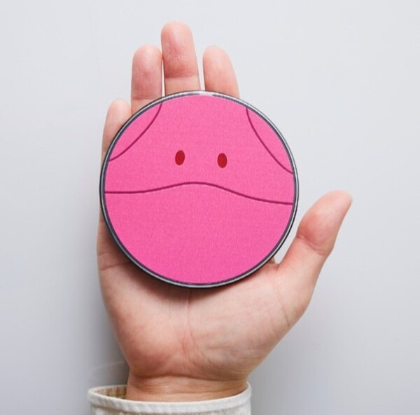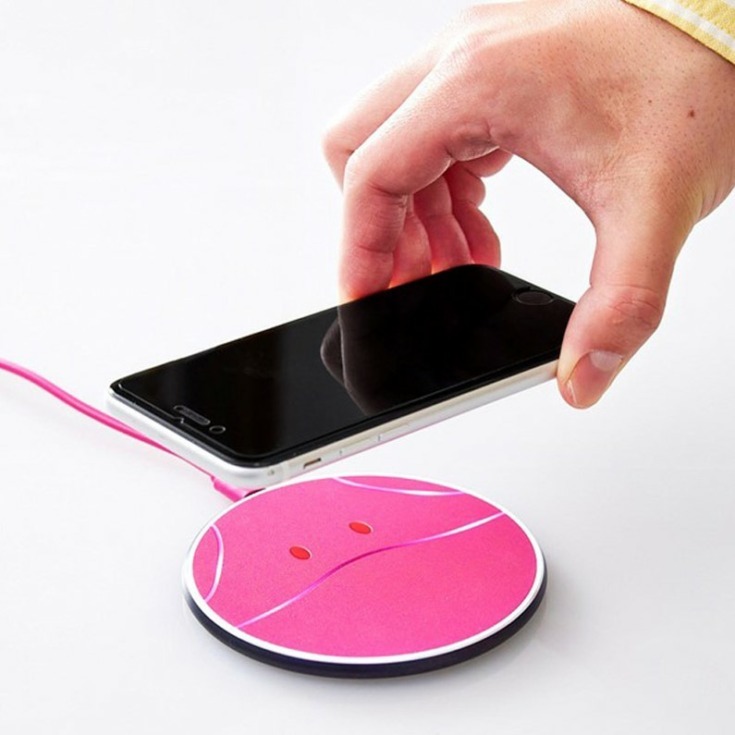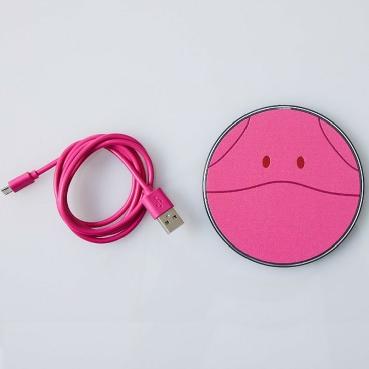 スマホ充電器はハロの上にスマートフォンを置くだけで充電ができる。手のひらサイズのコンパクトさなので持ち運びにも便利。また通電中は赤に充電時は白く点滅、フル充電時は消灯するので状況も一目で分かるようになっている。電源からも受電が可能となっている。