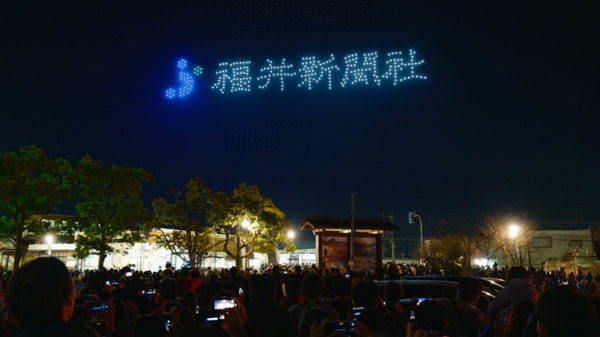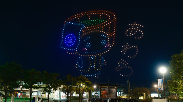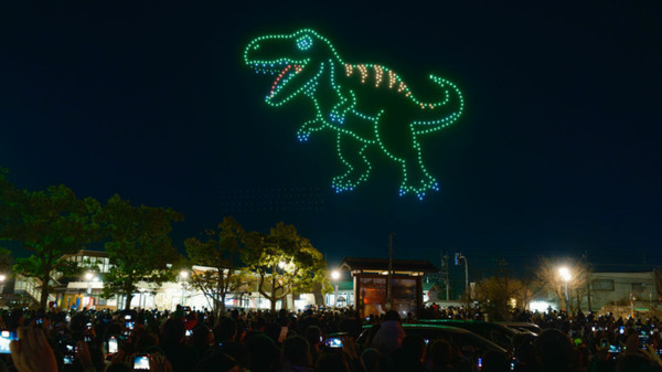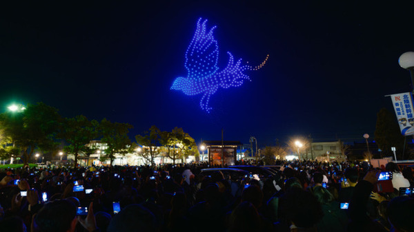 約10分間のドローンショーでは、『ようこそ あわら市へ「Welcome to Awara!」』からスタートし、新幹線W7系車両、同市の公式キャラクター『湯巡権三(ゆめぐりごんぞう)』や、新幹線開通初日に『2024.3.16 北陸新幹線がきた~』という歴史的な日を表現したドローンショーの演出があり、あわら温泉湯のまち広場に集まった7,000人の観覧者から大きな歓声が上がった。