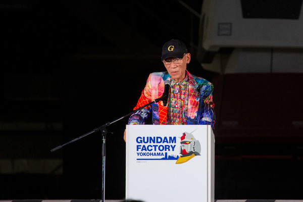 富野氏は「機動戦士ガンダムが誕生してから45年が経ちました。紆余曲折ありましたが、20年経って、若い世代の方達にバトンを繋いでここまで来ました。アニメとか漫画、ノベルスだけでなく、ガンプラなど、文化的に展開しながら社会に変化をもたらしたと感じています。そして、アニメでしかモノを考えられない私が、絵空事ではなくリアリズムとして、技術をどう使ってリアルなガンダムを実現するか、それぞれの立場の方たちと協力して検討する機会を得ることができた、そのことにとても感謝しています。