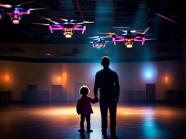 小型無人機であるドローンは産業用だけでなく娯楽用でも活躍しており、技術の進歩により屋内でも可能になったドローンショーを行う。わずか188gの機体にLEDライトを搭載した複数のドローン(安全面を配慮して、プロペラガード・安全装置搭載のものを使用)が目の前で飛び回る感動の空中ショーを楽しめる。