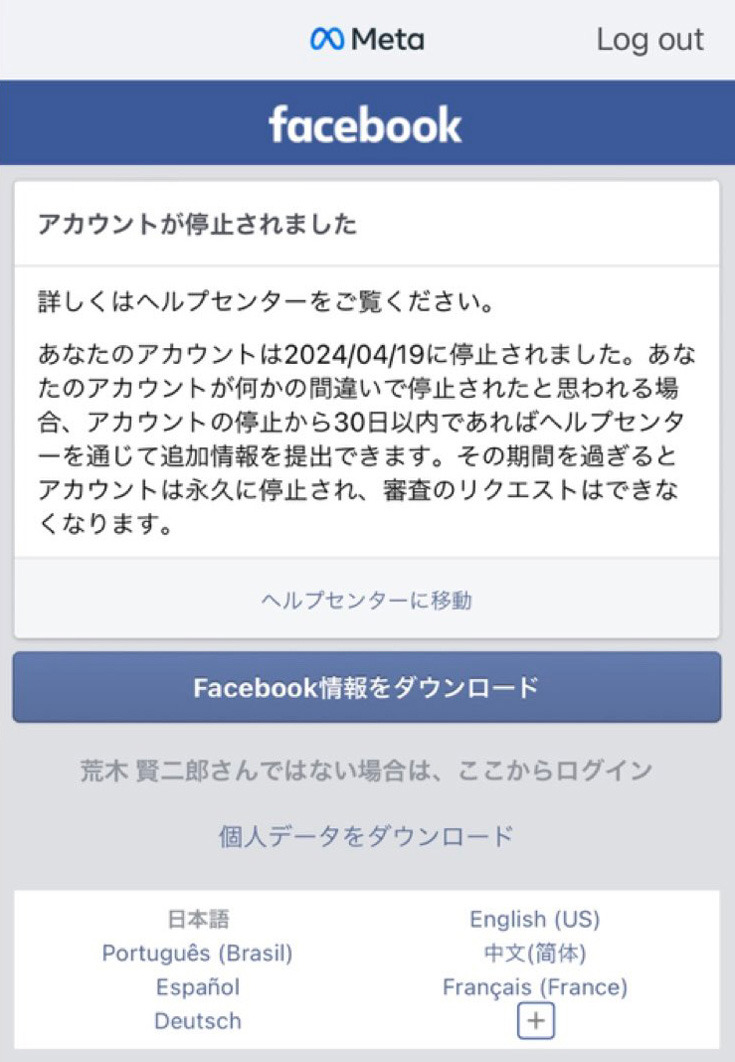 同社は「手順に沿って再審査を請求しましたが、画面上に「アカウント停止に関する決定の再審査はできません」と表示され、現在も凍結状態が続いています。個人アカウントの凍結により、facebook msgグループなどで連絡を取っていた仕事関係者との連絡もできなく、仕事に支障が出ており、大変遺憾です。」としている。