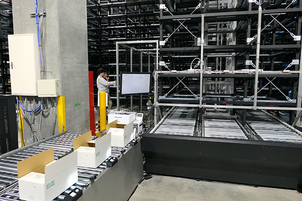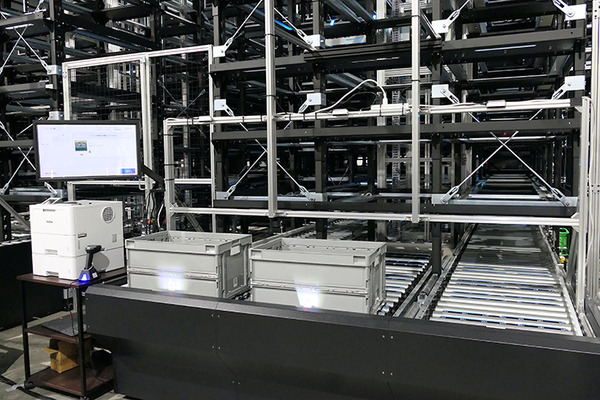各段の高さは50cm。各段1台ずつのシャトルが走行しており、それぞれの可搬重量は30kg。今後本格稼働を進めていく。