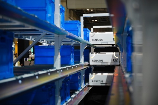 『RENATUS』は、縦横自在に移動する高速シャトルと独自のアルゴリズムを組み合わせた、最先端の自動倉庫システム。独自の設計と配車アルゴリズムにより、これまで困難とされていた大規模棚におけるワンストップ梱包を実現した。