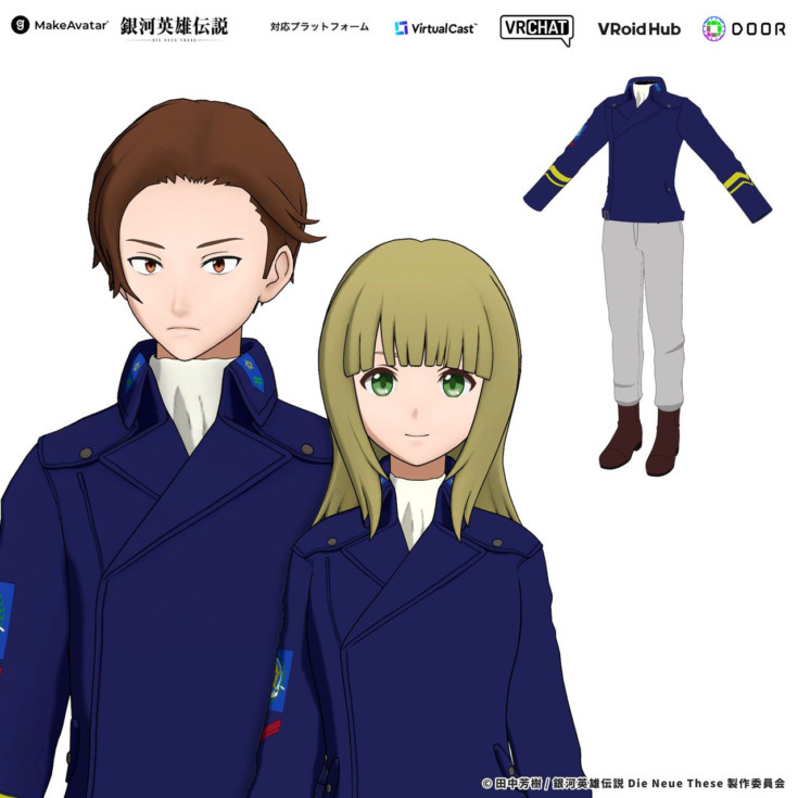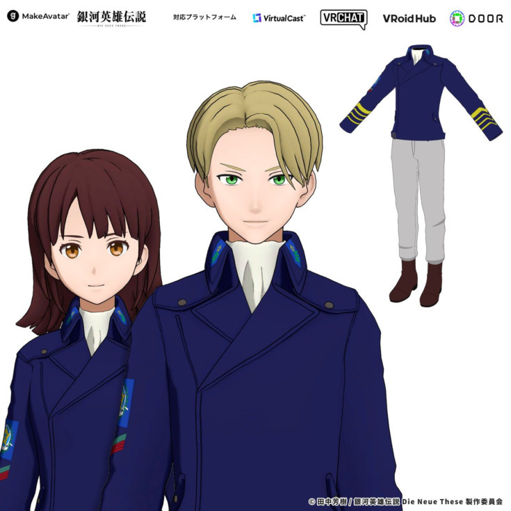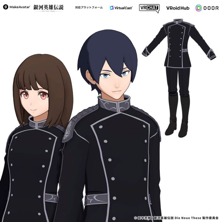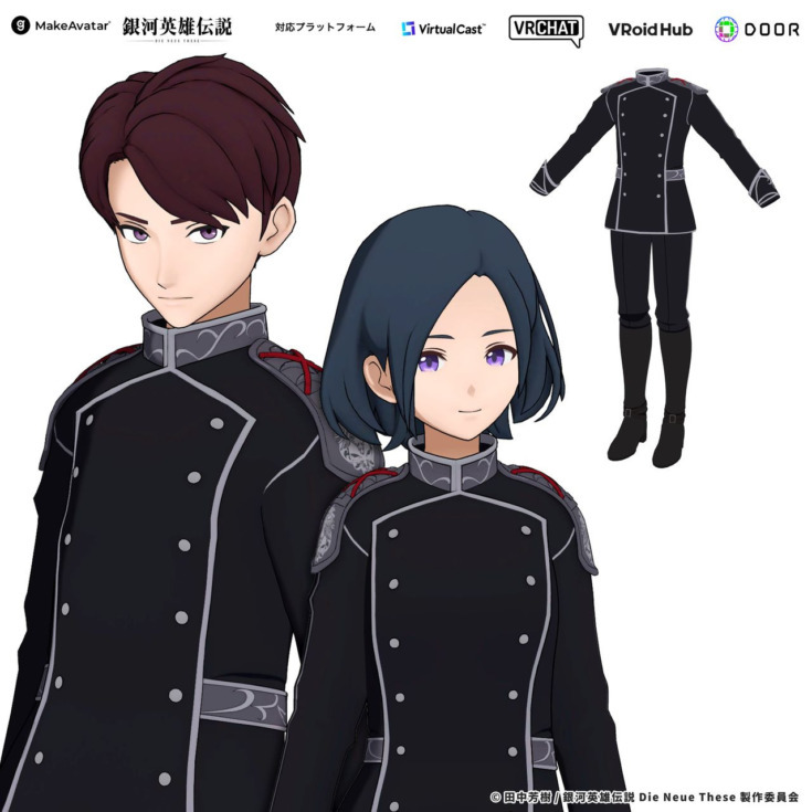 メタバース用アバターをキャラメイクすることができるMakeAvatarアプリで、自分のオリジナルアバターに着せ替えを楽しめる銀河英雄伝説のアバター衣装。