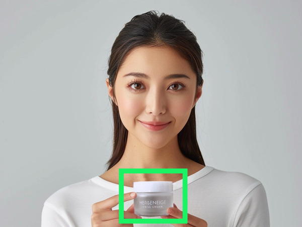 しかし、AI MIX AD PROMOTIONでは、元の商品画像を維持したまま、AIモデルに商品を持たせることができます。これであれば、この商品「HERBNEIGE」の広告として成り立つ広告画像素材となる。