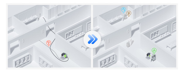 ・清掃中に電力が低下しても、ロボットが清掃の進捗状況を記憶しているため、フル充電後に前回終了時のポジションから再開できる。