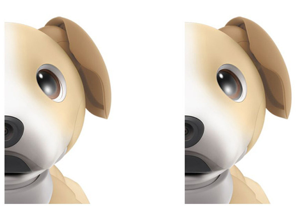 「aibo きなこ エディション」は、販売モデルでは初めて顔の部分に二つの色とグラデーションを使用した。淡い色味ながら活発さを感じさせるチャーミングなデザインに仕上がっている。
