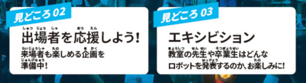 | 協賛・協力企業 | 日清食品株式会社、サイバーエージェント株式会社、株式会社ビクセン、ヴイストン株式会社、株式会社タカラトミー、川崎重工業株式会社、東京法令出版株式会社、ユカイ工学株式会社、株式会社ロボ・ガレージ、Rocket Road株式会社、JENESIS株式会社 他(順不同) |