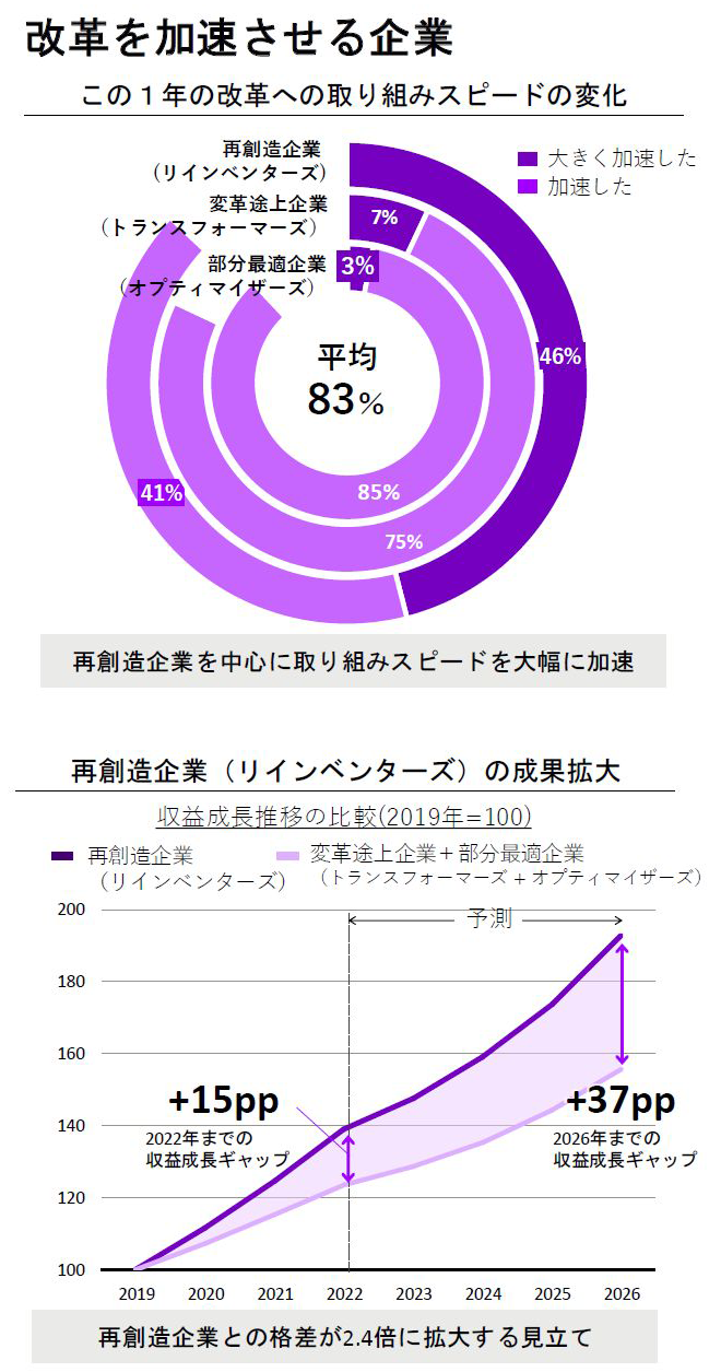 アクセンチュア株式会社は、そのレポートに基づいた説明会を報道関係者向けに開催。「企業全体の再創造」TER(トータル・エンタープライズ・リインベンション)を紹介し、日本企業の課題と打ち手を解説した。