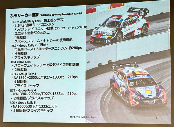 WRCにはいくつかのカテゴリーがあり、ラリーカーの仕様の範囲がそれぞれのカテゴリーによって定められています。中でも最高峰のカテゴリーはRC1「World Rally Cars : Rally1」です。