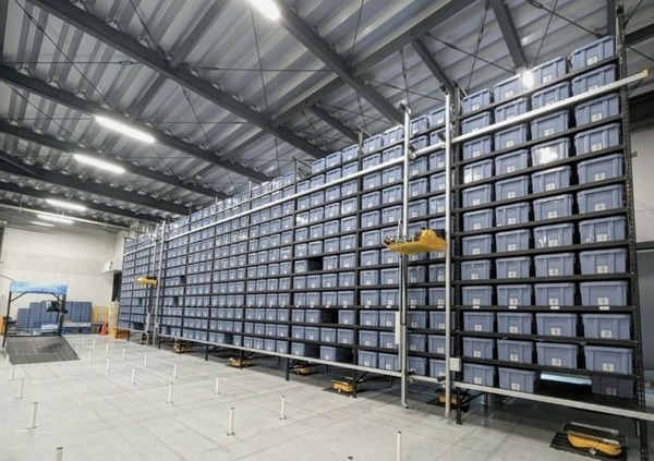 「AirRob」は、従来の自動倉庫と比較しレイアウトの自由度が高い保管ソリューション。倉庫のフロアの形状や天井の高さに合わせた設計が可能で、防火区画を跨ぐことも可能。ラック間のクリアランスやステーション設置スペースが小さく、倉庫スペースをフル活用することができる。600トート/時間/ステーションのピッキングを実現する。