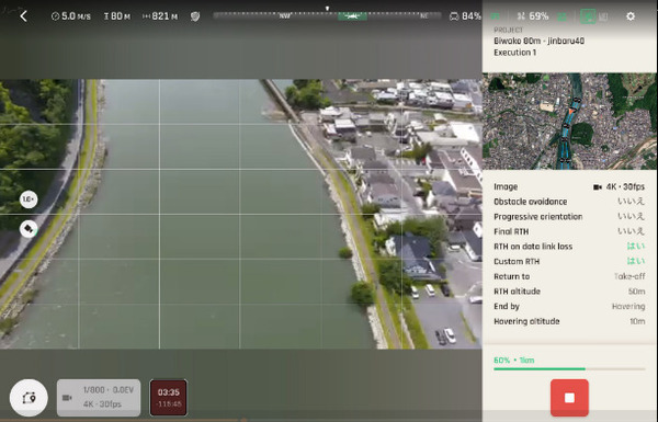 河川の巡視業務は非常に広範囲となるため、LTE通信が可能なことにより、巡視業務への活用の効果が高まると感じました。また、ANAFI Aiが電波状況を把握しながら、2.4GHz帯とLTE通信への切り替えが非常にスムーズに実施していること、加えて、LTE通信でも映像の品質が落ちないことに驚きました。