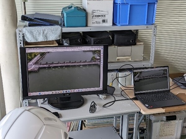 琵琶湖河川事務所の操作室内からLTEを経由したドローンの操作や映像配信は、屋外操作の良好な通信環境と比較しても確実な操作性や途切れることの無いリアルタイム映像配信ができることが確認できた。
