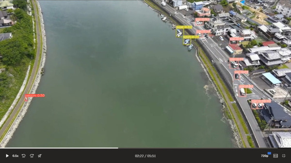 ANAFI Aiの映像を用いた画像解析から高精度で河川内(岸辺含む)の人・車両・船舶を自動で検知できることを確認できた。