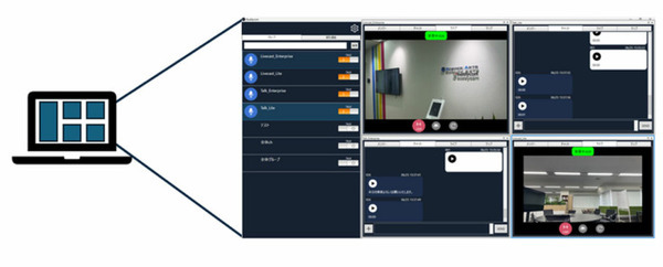 PCにWindows版Buddycomをインストールすることで、スマートフォンアプリと同様に、音声通話や映像配信等をすることが可能。また、Windows版Buddycomではスマートフォンアプリと違い、複数のグループを同時に確認することが可能となっている。