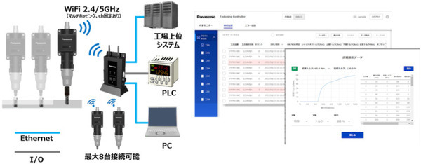 本体には磁歪式センサーを搭載しており、トルク値のほか波形などの各種データを無線で取得でき、各製造工程を細かく数値化・見える化し分析することで、製造ロスの削減・生産性の向上、高品質性の訴求への活用も可能。万一の品質不良の際には、原因の特定・工程改善にも役立つとしており、ボルトかじり検出機能によりボルト手挿入時の角度ばらつきを補正し適切な締付をサポートするなど、各工程に応じた設定が可能となっている。