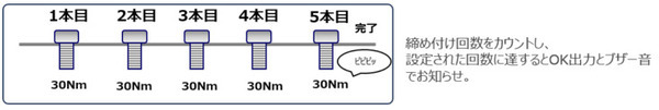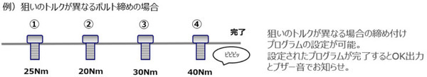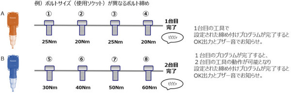 無線通信制御で「ボルトかじり検出」など、各種作業アシスト機能の設定が可能