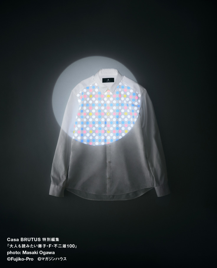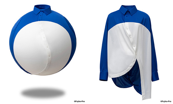 これまでのコレクションにも登場していた、球体に着せる服。ボタンを下まで閉めると球体になるという「BALL SHIRT(ボールシャツ)」がドラえもんカラーになって登場。