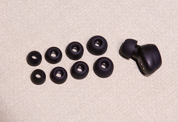 5サイズ(SS, S, M, L, LL)のイヤーピースが付属しているので、耳の穴にぴったりの大きさのイヤーピースを使用することでフィット感が増す。さらにハウリングを抑えることができる。
