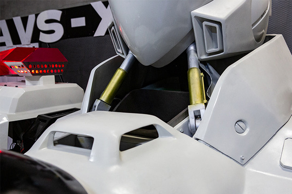 作品と同様にシートが上にスライドして、イングラムの胸部から顔を出す機構が準備されている。それも体験可能になる予定だ。