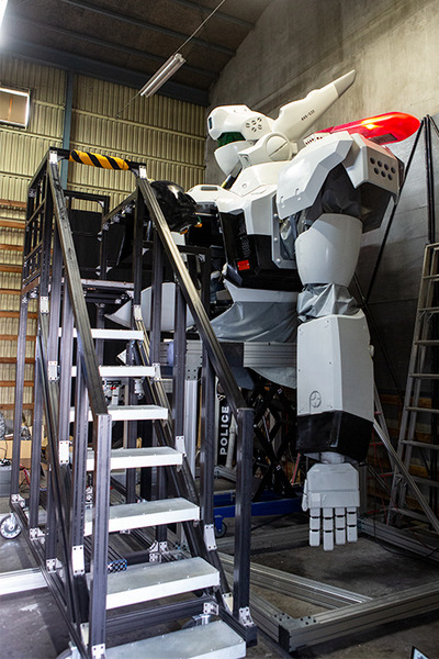 このイングラムはコミックスやアニメ作品で登場する実物大レイバー(ロボット)の設定と同じサイズ。操縦体験ではコクピットに乗り込み、両腕や五指を動かすことができる。ロボスタ編集部は公開に先がけて、感動さえ覚えるほどかっこいいイングラムを見てきた。