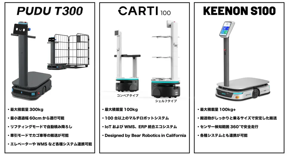 ソフトバンクロボティクスは、物流倉庫や製造工場における労働力不足と業務効率化のニーズが高まる中、今秋新たに倉庫や工場向けの搬送ロボット3機種の取り扱いを順次開始し、ラインナップを拡大する。