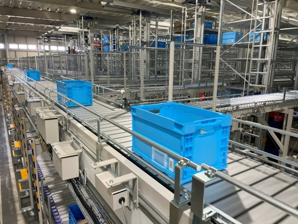 スタッカークレーンが商品の入ったコンテナや段ボール箱などを棚に自動で運び、保管する自動倉庫。作業者の元に商品が搬送される、Goods To Personの考え方を実現した仕組みになっており、高さ5.5mの空間を有効活用でき、労力と人員を削減するだけでなく、在庫管理精度の向上などにも繋る。今回導入した自動倉庫は、最大22,000個のケースまたは折りたたみコンテナ(オリコン)を収納することができ、様々なサイズのケースやオリコンの格納に対応している。