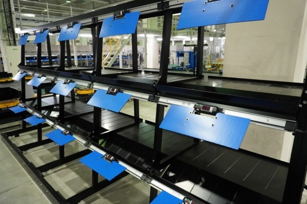小型AGVが作業者の元に商品を運び、作業者は出荷に必要な数量を「シャッターアソートシステム」に入れるため、繊細な商品の仕分け作業が可能となった。同時に180店舗分の仕分け作業を行うことが可能で、40台以上のAGVが9,000個の商品をステーション(=シャッターアソートステム)に運ぶ。