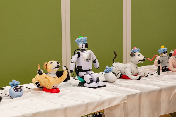 会場には、aiboやロボホンを連れた家族や・・