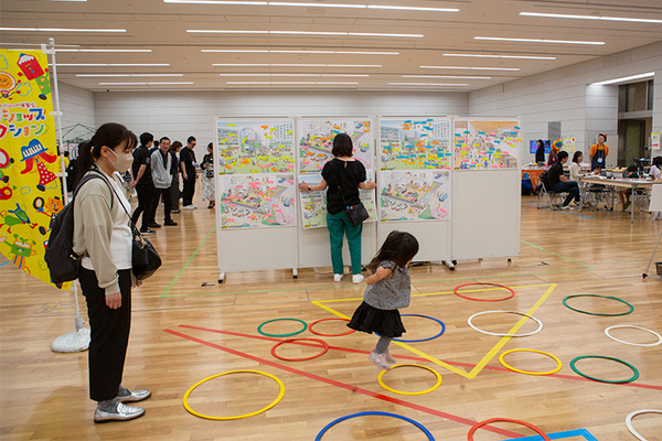 開場とともに多くの子ども達が参加、既にたくさんのアイディアの付箋が貼られていた。