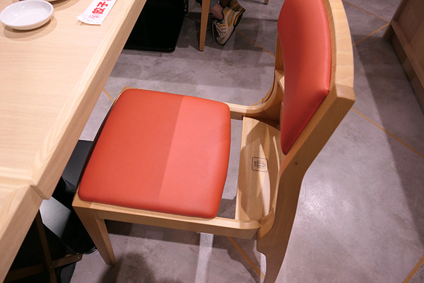 椅子も従来の「大阪王将」の赤い丸椅子ではない。テーブル席では後ろに小さな荷物も置ける、ゆったりとしたクッションシートの椅子を採用した。天井高も従来店舗よりも高くして、明るい空間となっている。滞在時間を長くすることで客単価をあげる狙いだ。