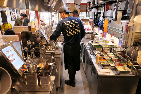 それと、天津飯だけは独特の卵のふんわり感を出すことが難しく、人が通常の中華鍋で調理している。