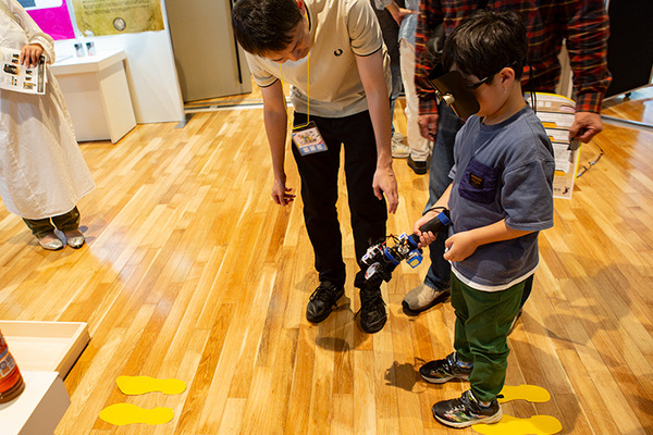 東京大学 葛岡・谷川・鳴海研究室は「リアルとバーチャル、親子で協力!」を体験展示。